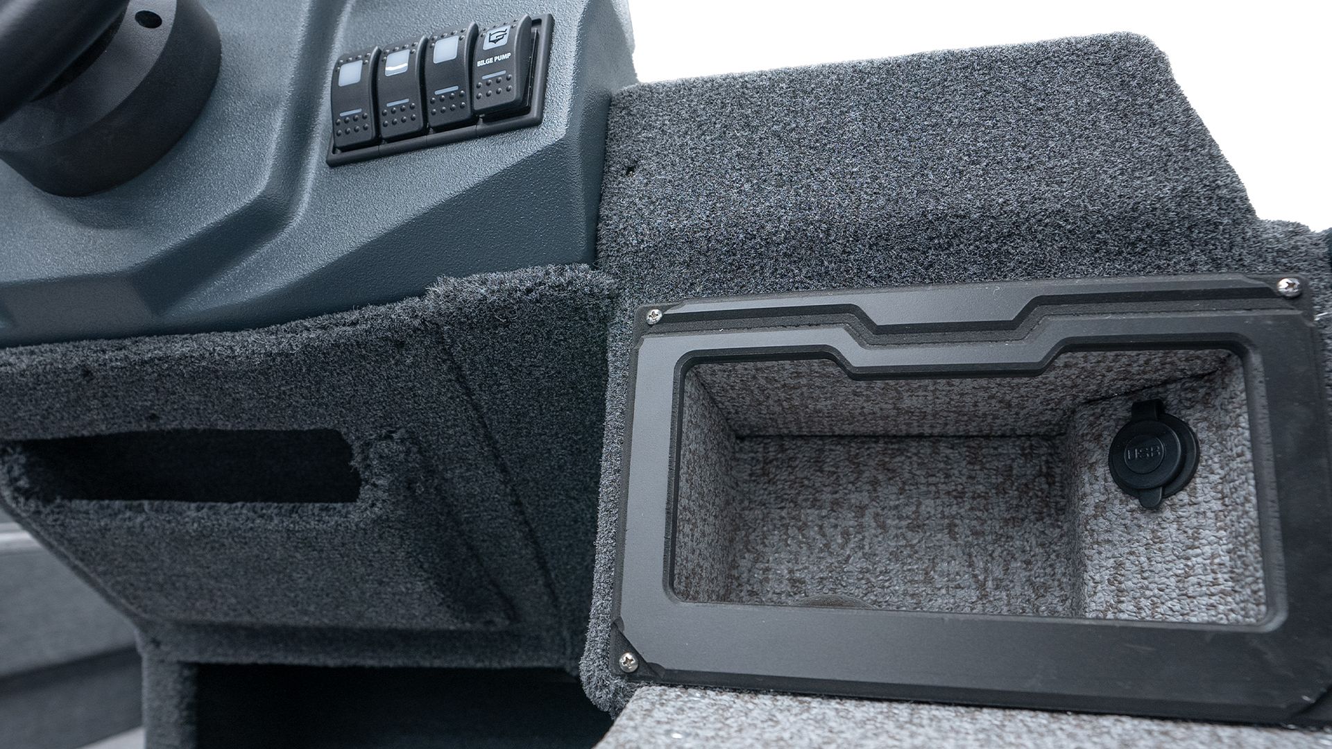 - Výklenok pre trollingovú batériu a nabíjačku