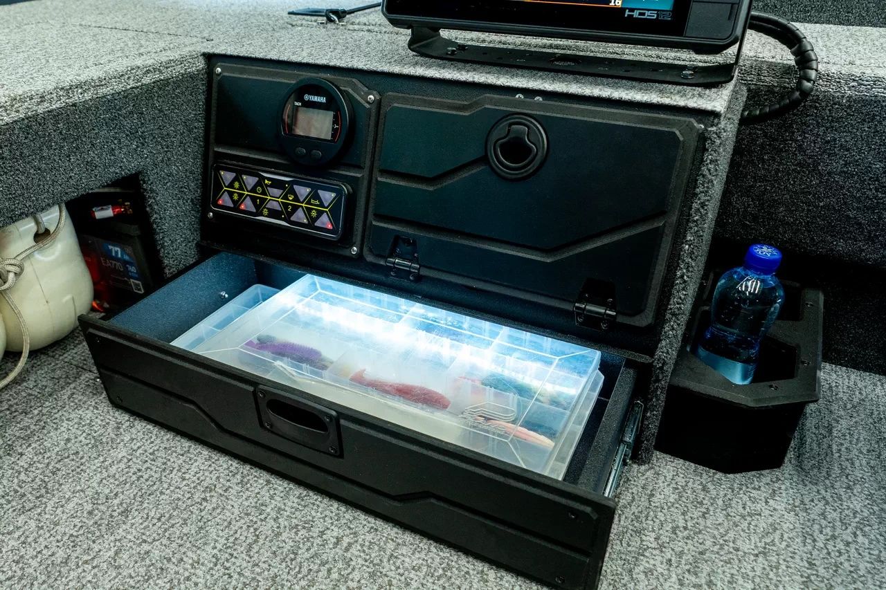 - Výklenok pre trollingovú batériu a nabíjačku