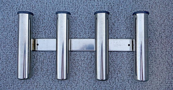 Držák prutů, nerez, na 3 pruty, organizer na nástrahy, kleště a nůž