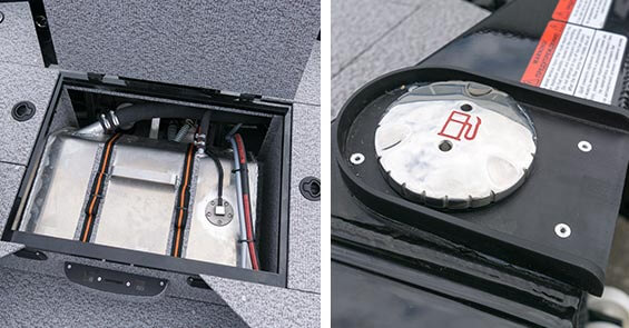 řední a zadní paluba, boční boxy a kokpit potažené kvalitním námořním vynilem a vnitřní stěny člunu a kokpitu pokryté námořním kobercem